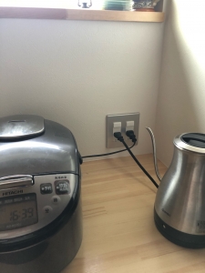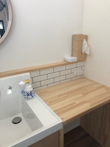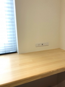 パソコンのカウンターには横並びのコンセントにしてカフェ風に。洗面もなんとなく横にしました。